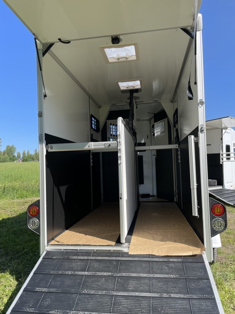 B60 | Studeri is our bestseller. This is the wagon for you who need plenty of space for both horses and equipment. With a curb weight of only 925 kilograms, the B60 offers | Steer the largest space in relation to its weight. The saddle chamber is so large that you can easily change in it. When you choose the accessory package Riding-equipped saddle compartment, the new model of saddle hanger, with the possibility to fasten the saddle, as well as a lot of more practical equipment that facilitates packing and storage is included.